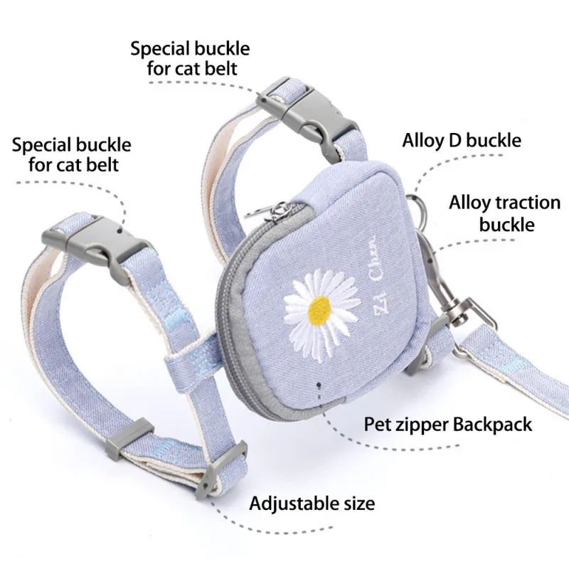 Pet Cat Harness Vest With Backpack Adjustable